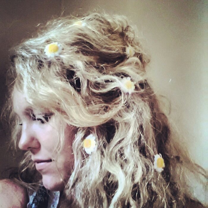 For this style I left it curly (which is my normal hair texture) then threw it half up and added little flowers I got from Claire’s.