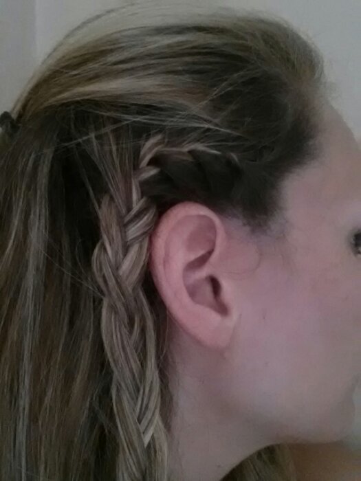 This one is pretty simple. Start with very straight hair and tie it half up. Then create small french braids on each side starting from the side of your head, past your ears and let the rest of the braid just hang.
