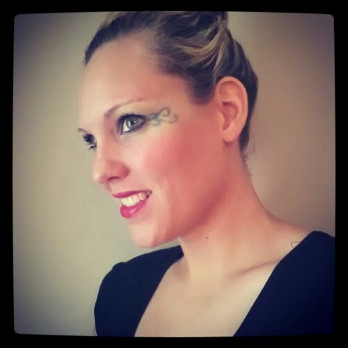 I used NYC makeup to get this look. A light green loose powder and a darker green pencil.