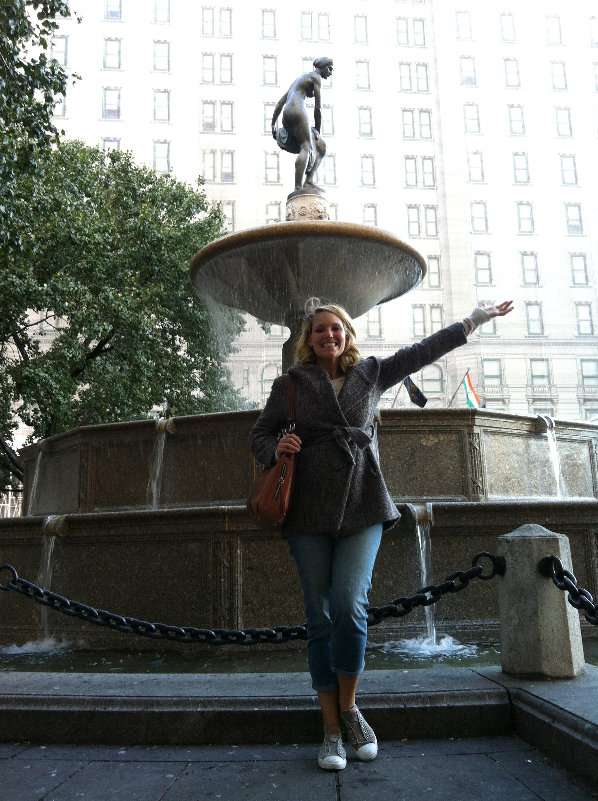 The filming of the opening credits did not occur in New York. They actually made a replica of this fountain and shot the opening in LA. But the structure still remains the same.