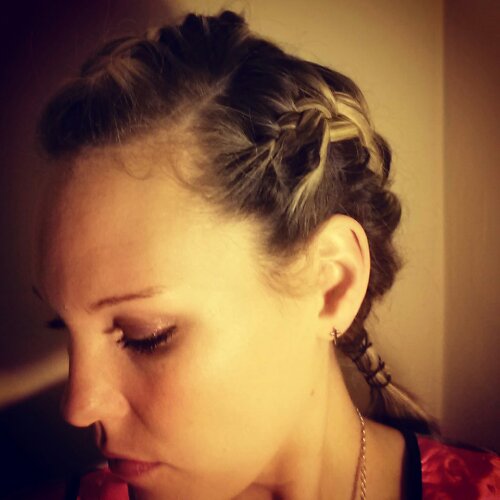 You start with three braids at the crown of your head and when they meet in the back you braid them together.