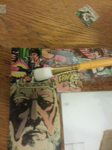 Once you’ve applied the comic to the frame, apply more Mod Podge over the comic to seal it in.