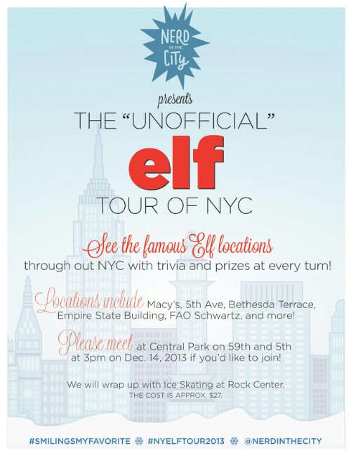 If you are not in NY, then I sorry you won’t get to join. But of you are… come on out and join us for the ‘Unofficial.Elf Tour of NYC!