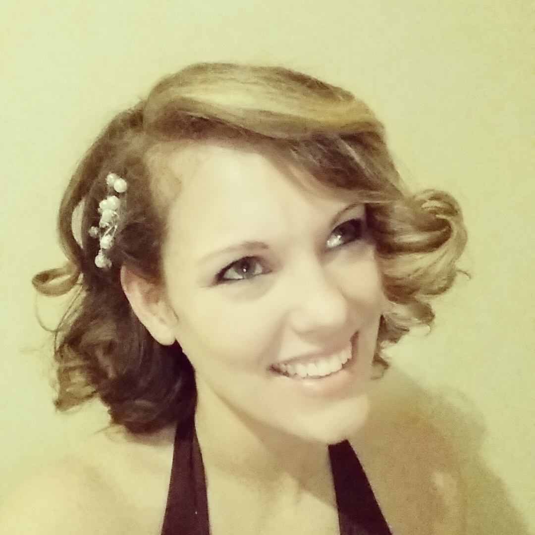 This is a fun and easy one. I started by attacking my hair with my Chi straightening iron. Curls are the order of the day. Then I added a little Big Sexy Hair spray for volume. Next I pinned up ONE side and in lieu of baby’s breath, I used little pearl hair sticks to mimic her hair accessory.