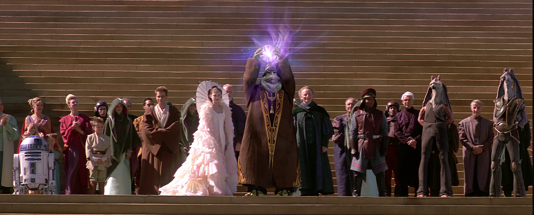 It may be a weird choice, but I always liked that big blue ball at the end of The Phantom Menace. The peace ball that Boss Nass raises in triumph. It’d make a killer lamp or maybe a nightlight. And I really want one.