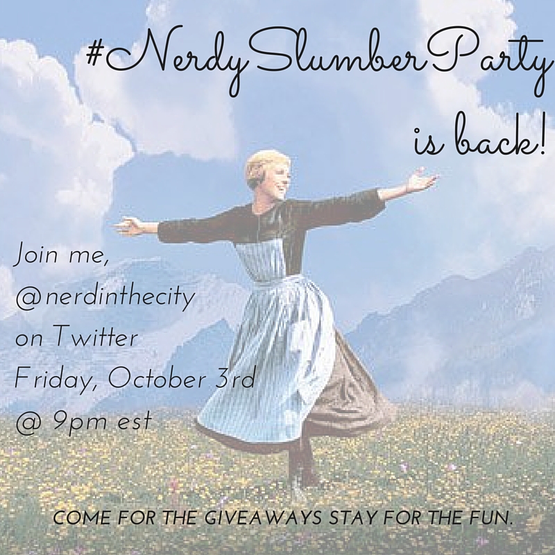 If you’re new to my #NerdySlumberParty… here’s what it’s all about. It’s a monthly Twitter party with giveaways, virtual caterers and fun nerdy chatting, Hope to virtually see you there!